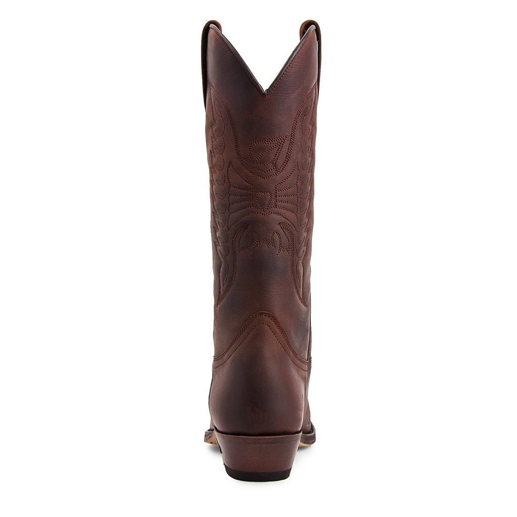 Bota de Sendra en sprinter marrón, una piel engrasada haciendo un efecto en la misma de usado o desgastado, con tacón y cubano y suela de cuero, y por supuesto con la garantía de calidad de Sendra Boots.