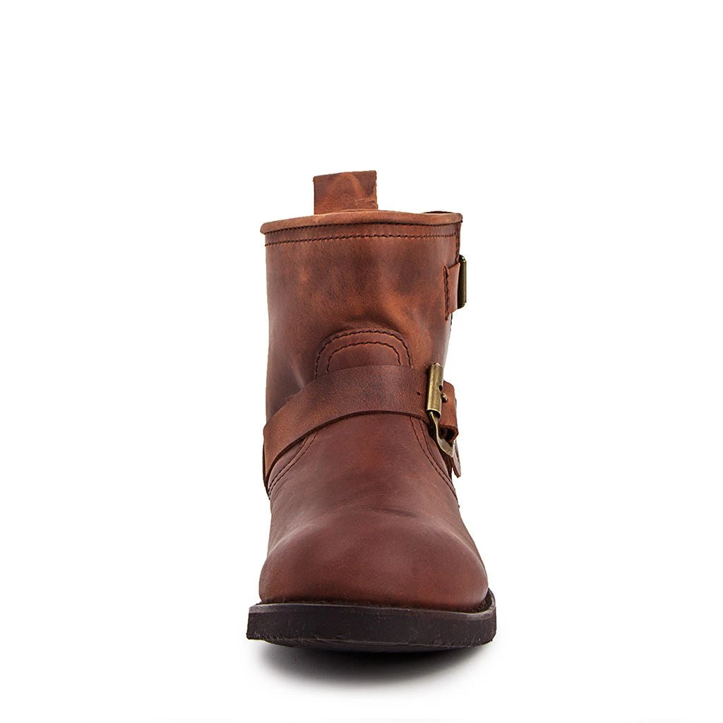 Botín de Sendra en piel marrón engrasada, con suela de goma resistente al aceite, con hebilla lateral , para los amantes del estilo Biker, un básico en nuestra colección Biker.