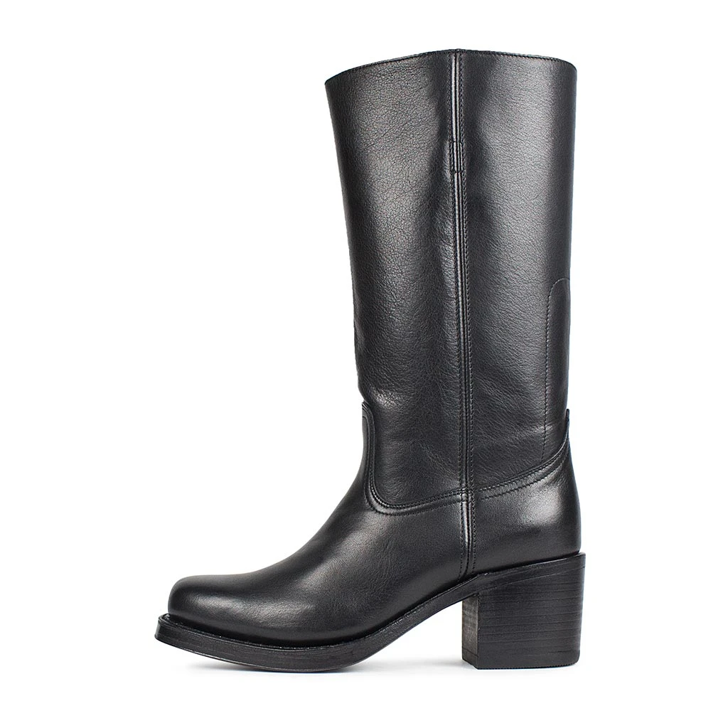 Estas botas caña alta son una elección perfecta para destacar tu feminidad. Estas épicas botas de piel de vacuno de color negro te permiten lucir un estilo sensacional, con su caña recta y el atractivo tacón cuadrado de 7,5 cm. Un diseño único para una mujer moderna. Con Garantía de Sendra.
