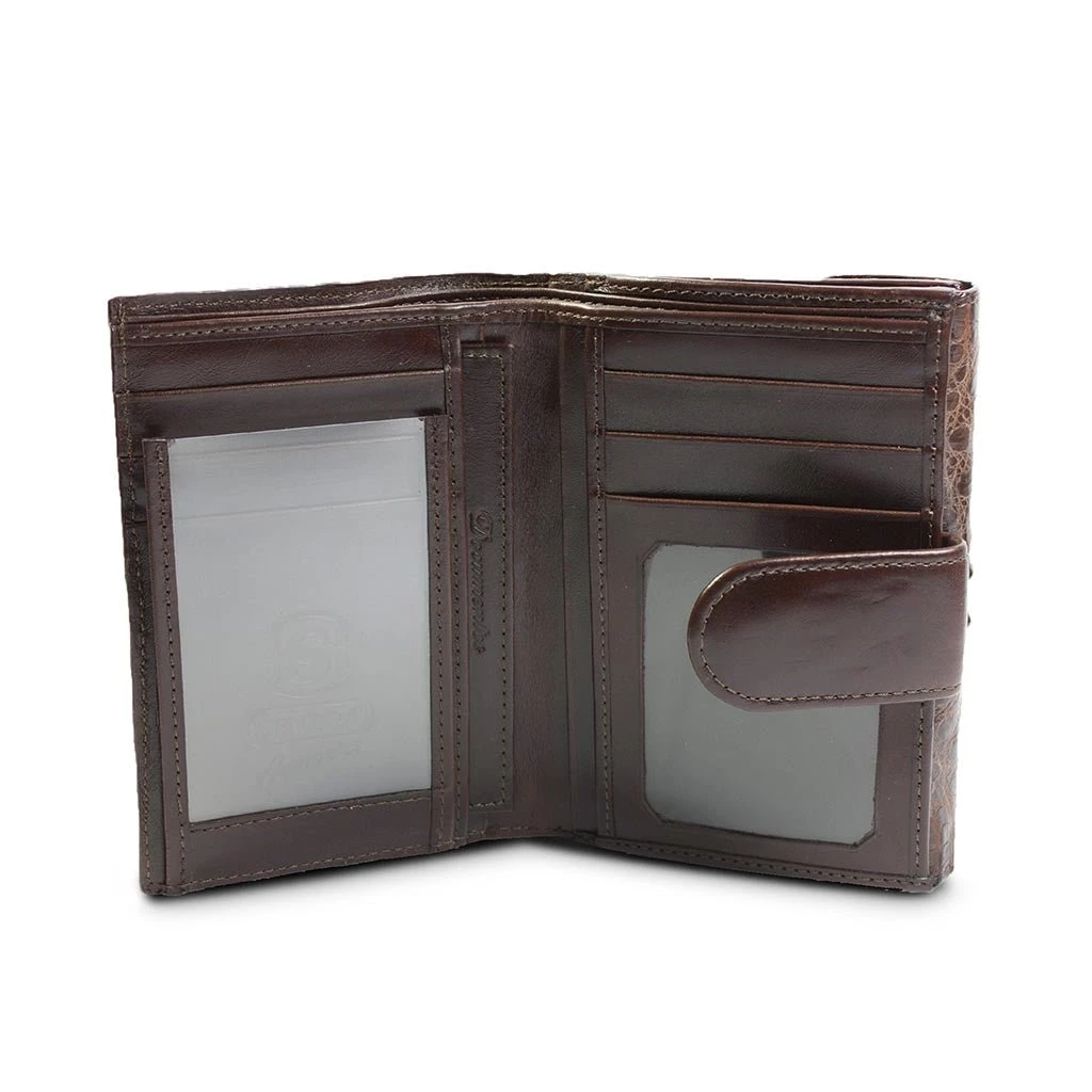 Cartera Sendra de mujer de piel de caimán en marrón. Interior con diversas ranuras para tarjetas y billetes, y bolsillo monedero exterior con fuelle con la garantía Sendra.